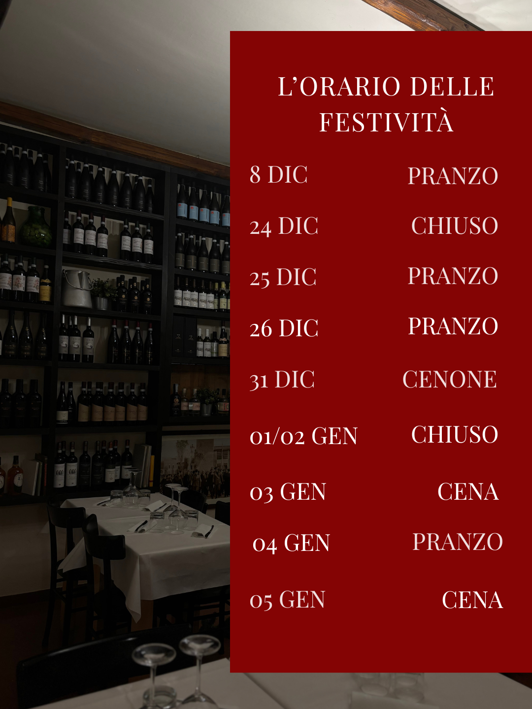 Siamo aperti a 𝑪𝒆𝒏𝒂 dal mercoledì al sabato.
